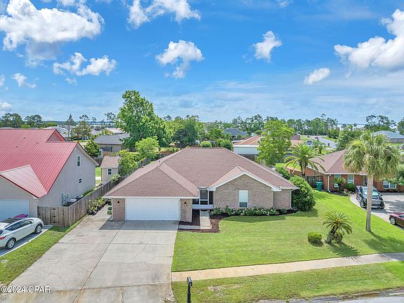 CURRENTLY UNDER CONTRACT, SELLER WILL CONSIDER BACKUP OFFERS Beautiful 4 Bedroom/2 Bathroom home with NO HOA conveniently located in the 'Callaway Point' subdivision minutes to shopping, restaurants, Tyndall AFB, Bayou access and more! This unique home sits on a large lot featuring an extended driveway, screened front porch, and fenced backyard. Inside you will find an open concept split floor plan with luxury vinyl plank flooring throughout, spacious hallways, and a beautifully arched ceiling with recessed lighting in the living room. Living room breaks off to a formal dining room; Kitchen featuring granite countertops, breakfast bar, stainless steel appliances, and eat-in dining area with bay windows. Situated off the back of the living room sits a sunroom like no other! The large sunroom is heated/cooled and features ceiling to wall arched glass windows perfect for natural lighting, indoor greenhouse and so much more! Master bedroom and en suite feature double vanity's, walk-in shower, garden tub, and walk-in closet.
