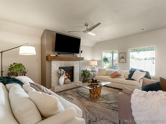 There is so much to love about this beautiful home on a peaceful cul-de-sac in the desirable Stone Horse neighborhood of Broken Arrow. Featuring an open floor plan, split primary suite, fireplace, new interior paint, covered front porch and covered back patio, large corner lot with recently stained privacy fence, and many upgrades throughout the home. In the bathrooms you'll find upgrades such as higher quality vanities, and in the kitchen you'll love the upgraded quartz countertops, massive island, and all of the extra storage offered by the cabinets extending all the way up to the ceiling. The home is also Energy Star certified for a high level of energy efficiency. Situated in a highly walkable neighborhood with sidewalks throughout, you'll easily be able to enjoy the amenities offered, including a pool and playground!
