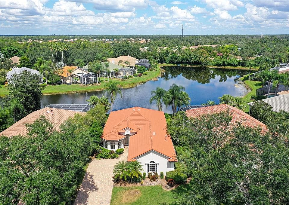 Welcome to University Park Country Club! On a serene cul-de-sac surrounded by majestic trees, this maintenance-free home offers stunning open lake views in one of Sarasota’s premier gated golfing communities. Go through double glass French doors into this Neal-built residence featuring two bedrooms, a versatile den/flex room, a bright Florida room with sweeping water views, and two full baths. This freshly painted interior (September 2025), new carpeting (September 2025), and a newer tile roof ensure peace of mind and immediate comfort. The open-concept design makes entertaining effortless, with a spacious great room flowing seamlessly into the dining area and tiled year-round Florida room with walls of sliding glass doors to the outdoors and incredible private water views and wildlife. The kitchen boasts vaulted ceilings, ample counter space, a cozy dinette and newer stainless steel appliances. The primary suite is generously sized with a large walk-in closet. The primary bath offers a dual-sink vanity, soaking tub and separate walk-in shower. Guests will enjoy a private bedroom near the second full bath and plenty of closet space. The den/flex room with built-ins is the perfect set-up for a home office, bonus/TV room or can function as a third bedroom for overnight guests. Additional highlights include high volume ceilings, custom built-ins in the great room and den, a large side-load two-plus car garage, laundry room with washer/dryer, extensive mature landscaping, and a paver driveway and walkway, and short distance to the community pool. With endless potential for your personal updates, this home is priced to reflect your unique opportunity. University Park is a premier private, gated golfing community celebrated for its natural beauty, mature landscaping and planned design. Behind the secured, staffed entrance lies an award-winning, resident-owned community offering 27 holes of four-star rated golf, eleven lighted Har-Tru tennis courts, four pickleball courts, a fitness center, croquet, and miles of tree-lined streets ideal for recreation or biking. Residents also enjoy first-class dining, a variety of social activities, and numerous clubs tailored to diverse interests. Ideally near downtown Sarasota and Lakewood Ranch. University Park provides easy access to the vibrant arts community, world-class museums, fine dining, shopping and top-tier healthcare. Just a short drive are some of Florida’s best beaches, the internationally acclaimed Nathan Benderson Park, UTC Mall, St. Armands Circle, boating options and endless outdoor recreation. Combining elegance, amenities and convenience, University Park offers an exceptional lifestyle in a breathtaking setting.