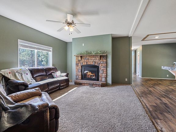 Welcome to this beautiful home nestled in the trees for a peaceful serene 9.64 acre setting. This well maintained 4 bedroom, 3 bath, 1944 sq ft home is turn key ready. The spacious kitchen offers lots of work space, a large island/eating bar, and plenty of cabinet space. The primary suite has a garden soaking tub, double sink vanity, and a walk in closet. The open concept living room has a cozy gas fireplace, plus there is an additional family room with an outside entrance as well. Relax on the deck looking at mountains, or enjoy overlooking your private and secluded back yard. There is lots of space to store your toys in the 36X30 shop, plus plenty of room to park the RV outdoors. Close to great schools, a quiet neighborhood, and minutes away from the golf course, parks, lakes, and shopping. Add to your footprint with the additional 10 acres available next door.
