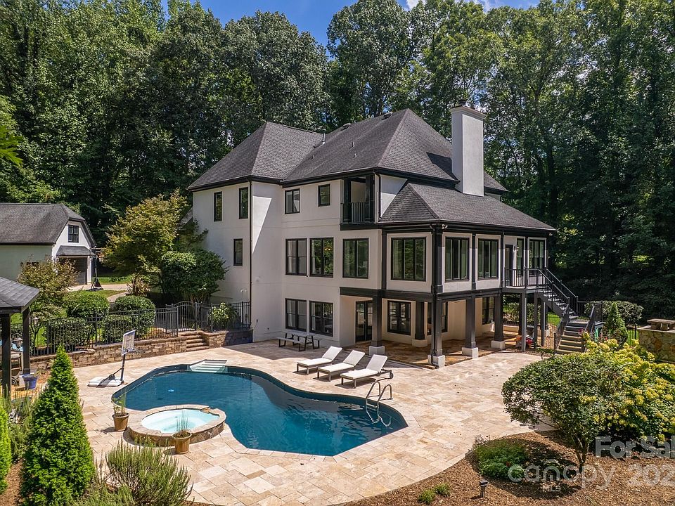 Looking for privacy in award-winning Weddington school district? This custom BASEMENT home gives you the best of both worlds-Nestled on 2.79 acres, it is conveniently located just minutes from Waverly and Wesley Chapel shopping area, which includes Target, Harris Teeter, restaurants, shopping and a Publix grocery store coming soon! Upstairs primary suite boasts of a tray ceiling, fireplace, a private balcony, a personal laundry area and a massive custom closet! 3 secondary bedrooms with a jack and jill bath and one ensuite. Finished basement is the perfect space to entertain guests, which leads out to the private oasis. Heated saltwater pool is enjoyable year round! Additional 2-story, 2 car detached garage is perfect for storage or potential additional finished square footage. Don't miss this hidden gem!