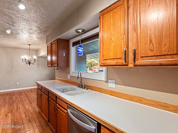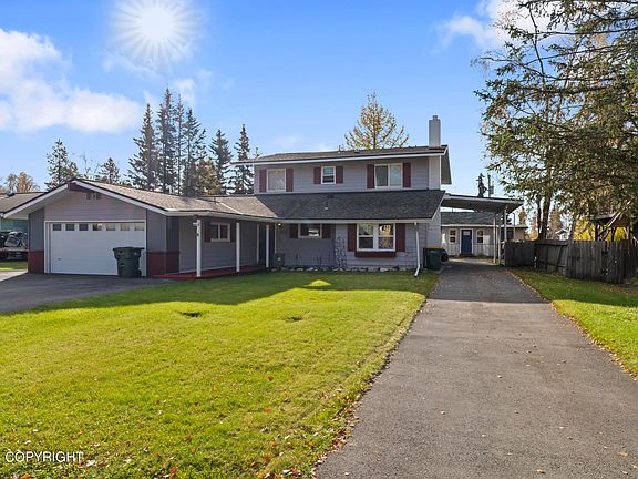 $10,000 towards Buyers Closing Costs or Interest % Buy-down PLUS Home Warranty included with purchase. AMAZING opportunity in Scenic Park, this house is roomy! Great layout for multi-gen living, MIL, space for a roommate, or just extra guest/living space with optional private entrance. Features 3 bedrooms 2 baths downstairs and 2 bedrooms 1 baths upstairs.Primary has two closets and en-suite bathroom with spacious walk-in shower. Two large living spaces, wood fireplace and wet bar. Newer carpets downstairs, HVAC recently cleaned and serviced, all appliances stay including washer and dryer (upstairs and downstairs). Fully furnished upstairs mother in law suite with full second kitchen, its own separate laundry and balcony with amazing mountain views. Oversized main driveway with room to park about 6 vehicles. In addition to that, there's a long driveway with large carport that can fit an RV and can also accommodate 4-6 vehicles. 3 outbuildings (two with electricity and one of those two has a heater). Large dog run has been recently re-done with access to the garage. Conveniently located near JBER, highway and parks/trails.