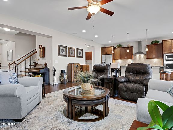 4 Bedroom, 3 bath, stepless ranch with attached 2 car garage. Fenced yard - 6' privacy fence. 4' open rail fence with view to the pond. Whole house generator with automatic transfer switch w/ transferrable warranty. 10' x 12' shed on concrete slab, matches house. Screened back porch with fan, ceiling light, and stamped concrete floor extending out to an uncovered stamped concrete patio. Stamped concrete front porch. Professionally landscaped front and back. Irrigation system with separate water meter and hose connection. Whole-house water filtration system with 5-stage reverse osmosis filtering system for drinking and cooking. House gutters drain beyond the property line. Upstairs guest suite with a large bedroom, full bath, and closet. Large enclosed walk-in attic storage area off the bedroom. Kitchen features 5-burner gas cooktop with outside ventilation, large walk-in pantry, slide out trays in all lower cabinets, soft-close doors and drawers, large stainless steel single sink with garbage disposal, dishwasher, wall oven with built-in microwave, under-counter lighting. Granite counter tops with tiled backsplace. Large master bedroom with tray ceiling and walk-in closet. Master bath features an over-sized step-in tiled shower with hand-held shower head and rain head. Interior features include 9' ceilings, engineered wood flooring, wainscoƫing in foyer and dining room with carpet in all bedrooms. 2 zone HVAC with separate thermostat control for upstairs guest suite.