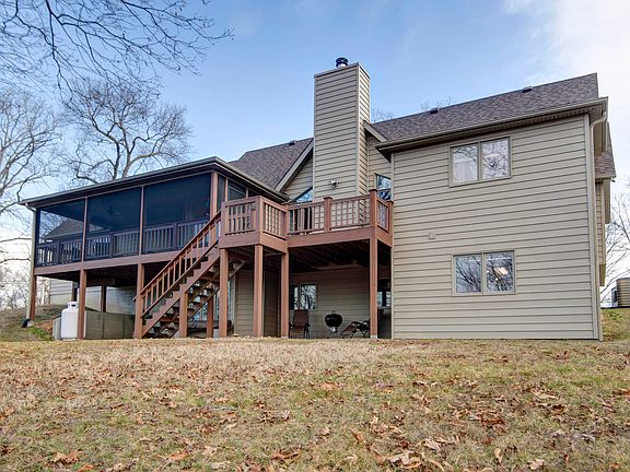 OPEN HOUSE 6/10 11:00-3:00 This beautiful lake view home sits on 3.45 gorgeous acres. The main floor has had a total remodel in the last few years with nothing left to update. On the main floor there are a total of 3 bedrooms and 2 full baths. There are two guest bedrooms with a full guest bath and a main bedroom suite with custom closet, tray ceiling and the attached main bath with beautiful shower and soaking tub, heated floor, double vanity with granite tops and more! For the cook of the house, a beautiful kitchen with granite counter tops, LG stainless appliances, and contrasting stained island awaits. Mesquite engineered hardwood flooring flows throughout the main floor excluding the tiled bath and laundry area. You'll love the open floor plan with vaulted ceiling and floor to ceiling stone fireplace. There's a dining room as well, located just off the main entrance and kitchen area. Step out to the screened-in porch or open deck to enjoy the beauty of nature that surrounds you. The lower level features bedroom #4 with a family room, full bath, second laundry/hobby room, large storage room and a john deer work shop that is heated and cooled. There's many extras like a security system, whole house vac system, reinforced deck wired with 220 if you'd like to add a hot tub, room to build a shop building and much more. The exterior has had a full makeover as well with new siding, new roof, new garage doors in 2021 and beautiful comoposite decking. For those lake enthusists, there's available for purchase a12x30 boat slip with lift and locker for additional $65,000 just down the street in a community dock. Checkout the attachments for a list of all the wonderful features this gorgeous home offers. Better hurry....this one is a winner!