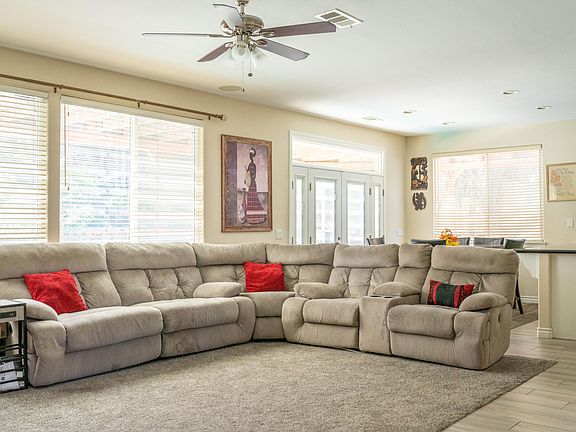You will love this Paradice house. 6 bedrooms with ceiling fans. 4 bathrooms. New carpet in formal Livingroom. Huge family room with nice fireplace. Surround system and ceiling fan. Upstairs is a loft you can used like an office or as a playroom. Upstairs laundry room, Master bedroom has a big walking closet with a window. dual sink, jacuzzi tub separate shower. Upgrade Island kitchen counter tops gorgeous black granite and back splash, tile flooring, doble oven and recessed ceiling lights. 2 bedrooms downstair tile floor. 1/2 and 3/4 of bathrooms tile floor. Solar panels are pay off, you will save a lot of money! 3 car garage. Beautiful back yard, swimming pool and jacuzzi. Gazebo, lots of trees and plants that make you feel that you are in an oasis. RV access. 5x7 shed. Desirable Neiborhood You must see it!