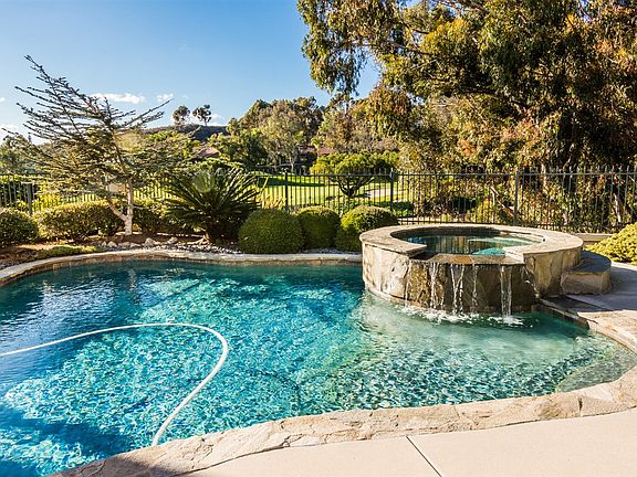 Welcome to this magnificent Aviara home with golf course views from the sprawling back yard. Located on a premium lot on a quiet cul-de-sac. Take in the light & bright open floor plan as you enter this gorgeous two story home with lovely hardwood floors that run throughout the first floor. The living room and dining room await you to the immediate left as you walk in with soaring ceilings and fireplace. As you continue to follow the hardwood floors you will find yourself in the spacious family room & massive kitchen with its own eat in nook. The kitchen is sure to please any chef with its spacious granite counter tops, large island w/ prep sink, breakfast bar, walk-in pantry, ample storage space, built in desk, wine refrigerator and new appliances including 5-burner gas range, and double oven. Family room is complete with fireplace, & entry to the back yard. The first level also features a bedroom, full bath, and laundry room. Head up stairs to find three bedrooms and the master suite. The master is a great retreat at the end of the day, with a balcony overlooking the grand back yard and uninterrupted golf course view. The master bath has tile surround soaking tub, separate walk in shower, his & hers sinks and walk-in closet. Outside relax in your own personal paradise; take a swim in your pool and relax in the spa, enjoy the sound of water falling into the koi pond. Additional features include: custom built-ins, fireplaces in family room, living room, and master, 3 car garage.
