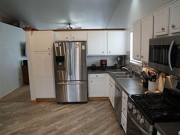 Great home in Highland Ranch situated at the end of a Cul-de-sac. 3 bedrooms plus office/study. Large open kitchen design-beautifully upgraded with stainless steel appliances, abundant cabinetry and counter space with pantry (refrigerator included in sale). Home features laminated floors, updated bathrooms, central A/C, separate laundry room, front deck, RV access, and nice mountain views. Home has easy RV access. Seller is in the process of installing retaining wall to increase usable backyard space; retaining wall will be completed prior to close of escrow.