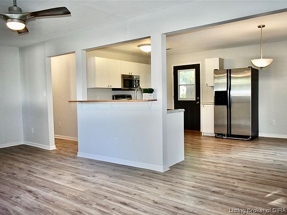 FULLY REMODELED 3 bedroom, 2 full-bath ranch located in Charlestown. The open floor plan will immediately catch your attention. The seamless flow between the living area, dining space, and kitchen creates an inviting atmosphere, perfect for both relaxing evenings and entertaining guests. Natural light pours in through large windows, highlighting the tasteful interior design choices that create a warm and welcoming ambiance. First-floor laundry area. Completely remodeled: NEW ROOF, NEW SIDING, NEW FLOORS, NEW DRYWALL, NEW KITCHEN, and NEW BATHROOMS! One of the standout features of this home is the spacious yard that encircles the home. Towering trees provide a sense of privacy and shade, making it an ideal space for outdoor gatherings, barbecues, or simply enjoying the beauty of nature. The large deck extends the living space outdoors, providing an excellent spot for morning coffee or evening relaxation.