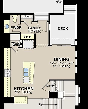 With over 1,700 square feet, the Enliven offers two owner's suites with private bathrooms and walk-in closets plus the laundry room is upstairs for convenience. A welcoming covered porch invites you into the spacious living room, kitchen and dining room. A deck is off the dining room for outdoor entertaining and there's a family foyer off the two car garage.