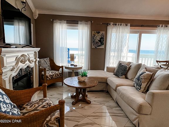 Are you dreaming of owning a stunning beachfront townhome at St Joe Beach? This end unit top floor gem features 2 bedrooms, 2.5 bathrooms, and breathtaking views of the Gulf of Mexico. As you step into the living room, you'll be greeted by panoramic gulf views that will take your breath away. The open area living, dining, and kitchen space is perfect for entertaining or simply relaxing by the fireplace. The kitchen boasts a beautiful kitchen island, stainless appliances, white cabinets, and quartz counters, creating a modern and elegant space to prepare meals. On the main floor, you'll find one of the master suites complete with a sitting area and a luxurious master bath featuring a double vanity and tub/shower. Upstairs, the second master bedroom and bath offer privacy and comfort, along with convenient access to the laundry area. This townhome is being sold fully furnished and equipped, making it move-in ready for you to start enjoying the beach life right away. Step out onto the back porch to soak in the stunning views of the Gulf of Mexico, with miles of beach waiting to be explored and unforgettable sunsets to be enjoyed. Located in Gulf County, this property offers pet-friendly beaches and is golf cart friendly, allowing you to fully embrace the coastal lifestyle. With no HOA fees this townhome presents a rare opportunity to own a slice of paradise at an incredible value. Buyer to honor rentals through 2024, making this property not only a dream home but also a lucrative investment. Don't miss out on this chance to own your own piece of paradise at St Joe Beach! No HOA.