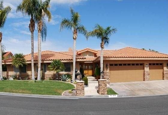 Gorgeous South facing home in Canyon Cove has views of mountains and great curb appeal. The great room presents vaulted ceilings, granite fireplace, dining and coffee tables, hutch and floors of 16x16 Italian ceramic tile. For the entertainer, there's a sunken bar w/ sink, frig and ice maker. The large island kitchen is storage central w/ corian counters, breakfast bar, dining area, roll up metal shutters against the sun at slider, dbl convection oven, trash compactor and frig. More storage i...
