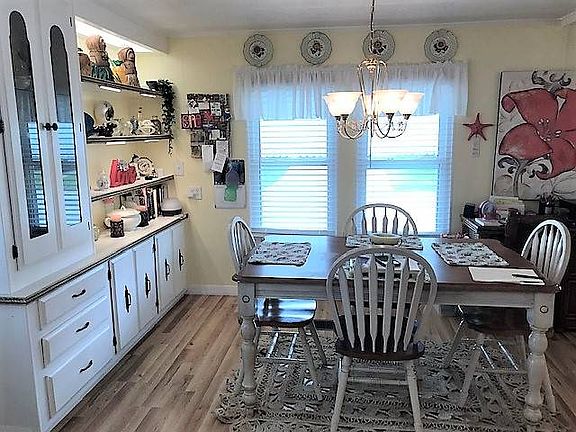 JUST LISTED UNLISTED - $34,900 with Loads of Upgrades & Storage This home has so many upgrades starting with the new double pane windows throughout the home. The kitchen with new white cabinets, tiled back splash, new counter tops, new flooring, new sink & faucet and all appliances are less than 2 tears old. The dining room has led lighting on the shelving in the updated built-ins. The new floor extends into the dining and living room. The living room is a good size to entertain your friends and family. The accent ship lap wall is very sharp and will go with any décor. The side enclosed lanai is open to the living room and gives you more living area or a third sleeping area. The guest bath is a soothing blue color and has been updated with a new mirror and cabinets. The guest bedroom is a great size for a queen bed and still have room for your guests. The master bedroom is large and has a king bed and lots of closet space. The master bath has been updated with a beautiful tiled shower, new vanity and faucet. The home has vinyl siding for low maintenance. There is a new Square D electric panel. The Air Conditioning is only 4 years old and has had regular maintenance. The storage shed has been expanded, there is a shop in the shed now, so you have lots room for storage. ACT FAST & CALL TODAY!! Don't forget to ask about the BANK FINANCING available on this home. Colony Cove is an age qualified (55+) five-star resort community of manufactured / mobile homes. The "Cove" boasts 5 clubhouses, 5 heated pools, a riverfront pavilion and private fishing pier, a private marina, a fenced dog park (very pet friendly), tennis, shuffleboard, new pickleball courts, 2 new fitness rooms, 24-hour patrol, clubs for every interest, and much more. There are daily planned activities throughout the park. Bottom line, if you get bored here, it's your own fault!! The lot rent in Colony Cove is based on the homes' location. While the monthly rent may not be the lowest around, it's by far the best value for the money. Not only does the monthly rent cover all of the amenities of the community listed above, it also covers almost all other monthly expenses such as; water, sewer, trash pickup, all property taxes, lawn maintenance. . .pretty much every monthly expense except electricity. The current lot rent on this home is estimated at $880.66 per month.