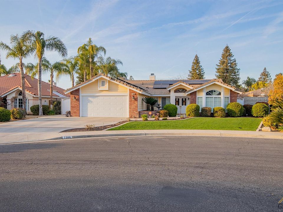 Willow Creek Neighborhood of Northwest Bakersfield is THE place to be! The homesites are lovely and the community friendly so we invite you to check out this new listing TODAY. You will love the private and quiet Cul-De-Sac location. This location yields a good sized lot that gives you an ample front yard, wide driveway space and a nice sized rear yard. Your summer time fun is just about to begin with this MASSIVE and beautifully designed swimming pool. If your body says hop into the spa, you can do so as it is connected to the pool. A lovely outdoor kitchen is adjacent to the back patio. Let's step inside so you can view the hardwood flooring in the main rooms of the house with laminate flooring in the bedrooms. Tile flooring is used in the bathrooms and laundry room which means no carpet inside and always a fresh and clean environment. You will love the well designed floor plan of this home and the OWNED solar electric system. Now you can WIN over PGE and the cost.
