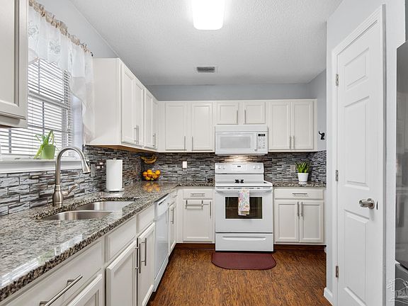 A stone’s throw from beautiful white sugar sand beaches lies this charming home with LOTS of extras! A perfect starter home for first time homebuyers, or investors & empty nesters. Featuring 1500 square feet of living space complete with 3 generous-sized bedrooms, 2 full bathrooms and french doors that flow into the spacious bonus room, which can triple up as a flex space for a home gym, home office or playroom. NEW 2024 ROOF! HVAC 2020, Water Heater 2016. Tasteful color pallets and accents throughout! The kitchen features granite countertops, custom backsplash, plenty of cabinetry, and an eat-in dining area next to a bay window that’s -perfect for morning coffee and a good book. Large privacy fenced backyard, with wide open space for outdoor dining & entertaining, mature trees, tons of cool shade and plenty of room for a fresh garden while watching the children play! Too many extras to name: Additional exterior storage building, interior UV air duct purifier, no neighbors across the street, plenty of parking, top schools, parks, dining, shopping, and military installations all within easy reach!