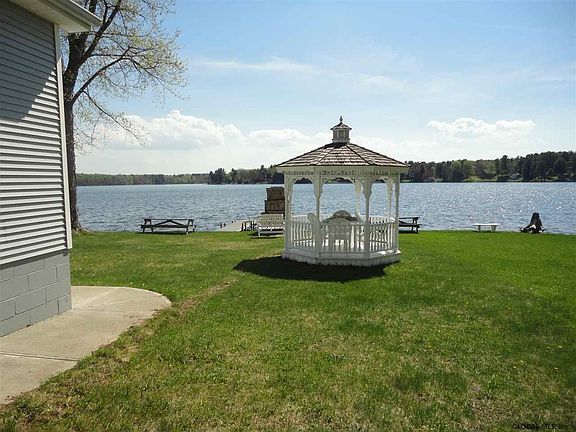 New LPGHA heating system being installed making this a year round home. Dock, huge deck, sheds, gazebo. Approx 1967 sq. ft. Custom 4 BRs, 2 full baths, walk out basement. Newer roof, siding, windows, kitchen + baths. FR w/ slider to deck overlooking the lake! Also includes seasonal cottage 432 sq ft with own septic for extra rental income. Gorgeous lakefront property. Move in ready. A must see. Call L/A for more details. Excellent Condition