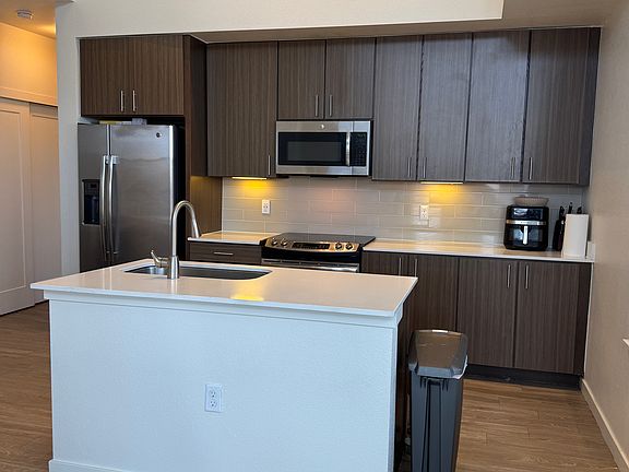 Sophisticated, modern interiors are equipped with all of the extras you need to help streamline your days in style. Quartz countertops and GE stainless-steel appliances will inspire you to fine-tune your culinary skills, while contemporary flat-panel cabinets and a subway tile backsplash provide the clean look you are after. An included dishwasher and full-size washer and dryer will help you stay on top of your tasks. When it's time to relax, your own private patio or balcony allows you to escape to the outdoors and sip a glass of wine while you take in the stunning mountain views. Hi there, this is lease take over for a two bed and two bath. It is an 11 month lease with no deposit required. Just looking for someone to move in as soon as possible. All you have to do is apply on their website and get approved and it is yours! This is unit #3012 located on the 3rd floor. It has 14ft ceilings. It also comes with your own private patio, washer and dryer, parking and much more. This is a dog, friendly community, very safe and quiet. Utilities are not included. Pets allowed. There is an application fee to apply on there website. Please message or call for more details! Thank you!