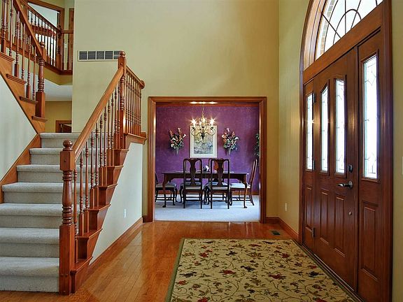 Beautiful custom built 5 bedroom traditional home on 6.9 acres. Huge wrap around front porch and mature landscaping greet you. Main level has a large two story open foyer. Double sided open staircase and 2 story great room with floor to ceiling river rock gas log fireplace. Built in book shelves flank each side of the fireplace. Formal dining room, private office / den. Nice kitchen with tons of cabinets, a granite center island and beautiful hardwood flooring that carry into the large breakfast nook. There is also a nice 3 season room with a slate tile floor. The first floor also has a guest suite (bedroom #5) with a private bath and sliding patio door leading to a deck, could be used as a master on the main level. The upper floor has 4 more bedrooms including vaulted ceiling bedroom #2 which has its own private bathroom. Bedrooms #3 and #4 share a Jack and Jill bathroom. All bedrooms have nice sized closets and closet tamer organizers. The huge master suite has a sitting room along with its own private balcony deck over looking the back yard. Master bath has separate jetted tub and large walk in tiled shower. The daylight finished lower level is set up for entertaining. Very nice wet bar area with custom cabinets, sink and mini fridge that has a wood front to match the cabinets. There is a rec room, a family room, a hobby/craft room and a theater room in the basement. Extra Large storage/utility room with tons of built in shelving. The house has 2 furnaces and 2 central air units. One for the main level and basement and one for the upper floor. New water softener (rented). House is wired for a security system and also with a whole house sound system. All walls 6 inches thick for added insulation factor. Above ground pool for the hot summer days and a storage shed for the extra yard or pool gear. Far enough out for a very private country feel but very close to shopping and schools. Property suitable for horses if desired.