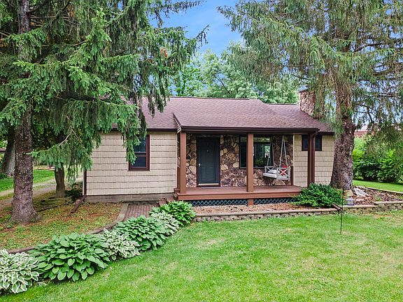 A 6-car garage? An affordable private oasis - entirely remodeled and perfectly move-in ready. This home is a mechanic's dream, a woodworker's paradise, and a blacksmith's utopia. With a 6-car garage (1,400 square feet of garage space) the possibilities are limitless. Enjoy entertaining guests under the vaulted ceiling, while next to the cozy wood burning fireplace, save utilities with all the natural light entering through the skylight and large picture window. Don't forget to go outside to your half acre lot and enjoy the two patios and large garden -- you can even raise some chickens in the henhouse! This ranch has been meticulously maintained with numerous updates including: new accent walls, updated flooring, new interior/exterior doors, new trim and baseboards, a laundry room remodel, a full bathroom remodel, new light fixtures and ceiling fans, and a deck/patio refresh. All of the major ticket items have been updated or replaced recently as well, including: the Roof (2017), Furnace (2023), Air Conditioner (2024), Water Softener (2021 - owned), Reverse Osmosis Installed (2021), Radon Mitigation (2020), and New Appliances (2023). The basement offers a bonus room that could become a bedroom with an egress window, a roughed-in bathroom with a nearly complete shower, and the rest of the basement is nearly finished -- just add flooring. Schedule your showing today!