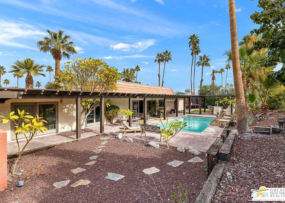 Exceptional location...maybe understatement ! Nestled in the most desirable South Palm Desert - above El Paseo, around the corner from the pristine Ironwood Park, the property is guarded by the majestic Santa Rosa mountain to the South. Spectacular oversized backyard with south-west exposure ensures a magical pool experience, complimented by the vivid mountain views in the background. Great display of colors and vibe throughout the house, with each of the three bedrooms connected via sliding door to the backyard and pool. Upgraded main bathroom with oversized step-down shower. Bright great room with fireplace, provides panoramic view of the sparkling pool & spa. Spacious custom-built BBQ area and patio will satisfy your culinary demands. Elevated oversized lot (13,000+ sq.ft.), double garage, plenty of room for additional storage and extra parking (RV?).