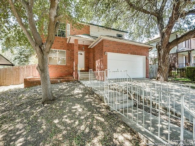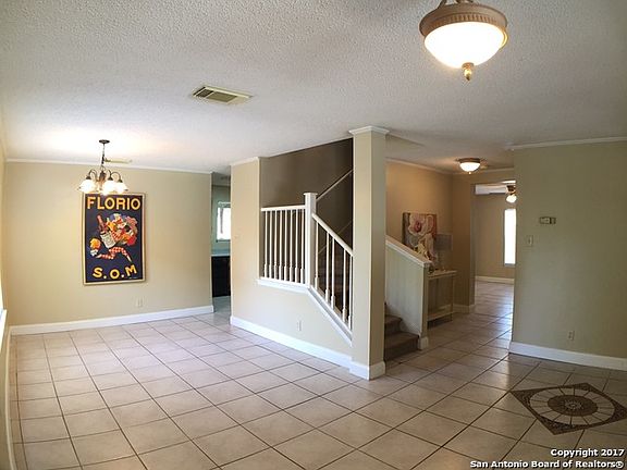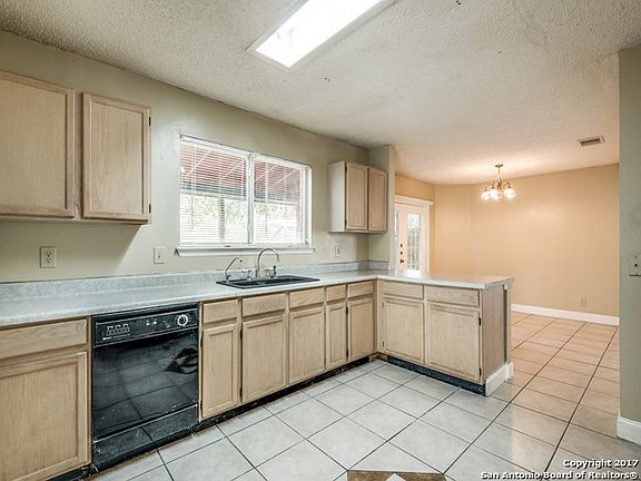 Beautiful, Clean and Ready for you to move in. This spacious FOUR bedroom home has a large master suite with walk-in closet and full bath. Two living areas, and two eating areas with large utility room off of kitchen. Secondary bedrooms are also good sizes. Features include large mature trees, French doors to covered patio, plumbed for water softener and shed. Interior painted July 2017. Convenient to IH-35, Loop 1604, Randolph Air Force Base and Fort Sam Houston.