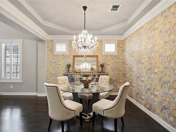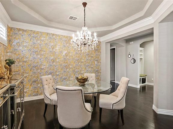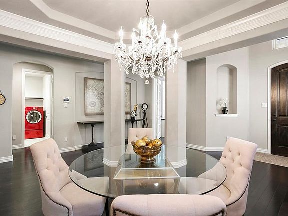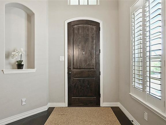 Elegant 2-story home in quiet Bellaire Ridge with many upgrades. Vaulted ceilings, open floor plan, abundant natural light, plantation shutters throughout. Master down, secondary master and 2 bedrooms upstairs. Chef's kitchen with 48-inch freestanding range, pot-filler, quartz counter-tops, floor-to-ceiling custom cabinets. Restoration Hardware pendant lighting and chandelier in kitchen, formal dining. Engineered wood floors in living areas. Livingroom surround sound wired. Custom built cabinets and desk in 1st-floor office. New Roof! Backyard plumbed for gas. Walk to Oakmont Park with walking, biking trails. Top rated public and private schools nearby. Easy access to Chisholm Trail Tollway. Low maintenance.