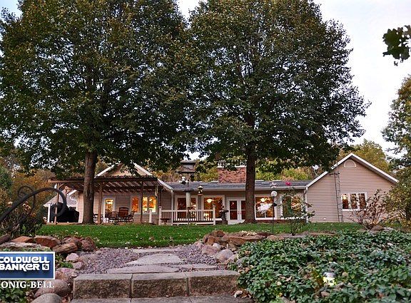 BREATHTAKING 2,857 SQ. FT. RANCH NESTLED ON 5 ACRES WITH A CREEK RUNNING THROUGH THE PROPERTY BOARDED BY WOODS... AN AMAZING LUXURY RETREAT! This rare property showcases a rock bed leading to tiered steps, winding creek & wooded acreage. Enjoy the 30'x14' 4-season room with wood-burn stove, skylights & vaulted cedar ceiling. This area opens up to the tiered deck featuring a pergola. 3.5 car attached garage with pull down attic steps & utility sink, a detached 2 car garage, 12'x12' garden shed & new architectural roof complete this remarkable property! Kitchen boasts granite tops, 42" cabinetry, bbar, plan desk, double oven, stainless steel appliances & tile back-splash! Great Rm presents floor-to-ceiling Appalachian wood-burn stove insert fireplace with volume ceiling & new skylights. Gleaming wood floors, solid doors and sun tunnels. Master Suite has access to enclosed porch & features extra wide custom tiled shower. Wine