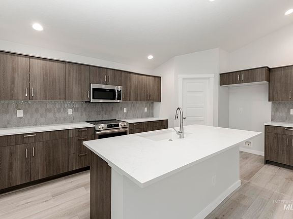 Feel enriched in your brand new home located in Nampa, Idaho! The Preston 2126 is designed with easy living in mind. Enter inside to the dedicated entryway and make your way to the open living areas, where vaulted ceilings and an abundance of natural light await. The kitchen, living room, and dining room combine to make the perfect hosting space, ready for get-togethers or movie nights. The kitchen comes with stainless steel appliances and stylish solid surface countertops, adding both functionality and aesthetics to the kitchen. The primary suite is tucked towards the back of the home for peace and tranquility with its large en suite bath and walk-in closet. Photos are similar. All selections are subject to change without notice, please call to verify.