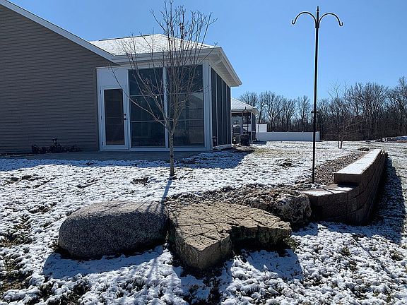 Lovely custom built villa completed in January of 2018. Offers an open 1,411 square foot plan with vaulted ceiling in living room, dining room and kitchen with gas fireplace. Walnut stained bamboo hardwood floors in living room, dining room and master bedroom, tile in all bathrooms, kitchen and laundry areas. Laundry includes washer, electric dryer and washtub off a spacious two car garage. All stainless steel appliances inkitchen with eight more years of warranty and upgraded granite kitchen counter tops. The entire home has a fresh look with white plantation shutters for quick sun and privacy control. Off dining area is a double patio door toa Patriot three season sunroom and outdoor stone patio. Complete with landscape--dogwood, pine and birch trees as well as soil retaining wall and underground drainage to lot line. Master bedroom has vaulted ceiling, walk-in shower, double sink with cultured marble counter top, storage cabinet and closet leading to walk-in clothing closet. Second bedroom on first floor includes bathroomwith tub-shower unit. Basement finished, 797 square feet with carpeted entertainment area, third bedroom with large walk-in closet and egress window, full bath with walk-in shower. Unfinished utility/storage area is approximately 614 square feet also locating reverse Osmosis water filtration system. Includes 200 amp electric service. Directions: 162 to Gliddon Boulevard to Fulham Lane, Troy, Illinois. Please no third parties at this time. Thank you.