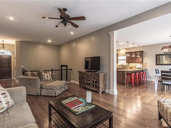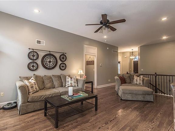 Main-level living! HUGE kitchen with tons of cabinets, granite counters, pantry & convection microwave. Central vac & crumb catcher in kitchen! Master suite has vaulted ceilings, double vanities, whirlpool tub, separate shower, and walk-in closet. Enjoy a fire on your private patio with surround sound & gas hook-up for your grill! Finished basement with 2 bedrooms, full bath, rec room, gym area and STORAGE. Surround Sound throughout home! Security System! Liberty High School boundaries! Mud room/drop zone!