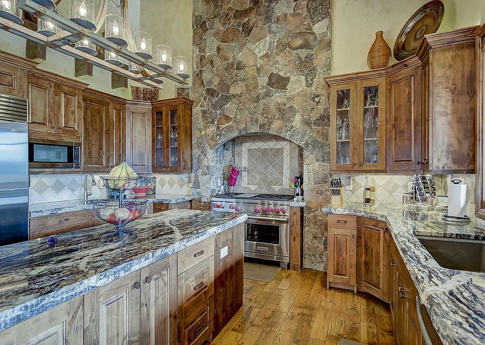This beautiful mountain home with 5 BR & 7 BA on 6,099 sq.ft. living space boasts spectacular views on to a mountain preserve.You will love the many fine features of this home including the open floor plan with vaulted ceilings & natural wood floors throughout the entire living area.Along with the two main floors, there is also a bedroom loft with a built-in mini kitchen.On the main floor is an expansive great room, office & master bedroom, each with their own fireplace,a beautiful gourmet kitchen with stunning granite counter tops.A deck surrounds the entire back of the house and is accessible from both the main living area & the master bedroom.The lower floor has 3 BR with its own full BA & walk-in closets & also has a surrounding deck with a hot tub.A wine cellar, games room,full laundry facilities & a magnificent 14 seat theater room complete the lower level.The house has the Savant electronic system built in to control all audio,video & lighting throughout the house from anywhere.