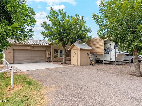 This property has it all! No HOA, OWNED SOLAR, covered RV parking with electric hookup, pecan trees, mountain views and 1 1/4 acres for your horses to roam! Enjoy the serene, quiet feel of country living while being close to freeway access and amenities. Beautiful home with updated kitchen. Custom cabinets, granite counter tops and a large window overlooking the stunning backyard. Arizona room off the back of the house to sit and enjoy your coffee in the mornings. Plenty of storage with multiple sheds in the back and workshop. This baby won't last long!
