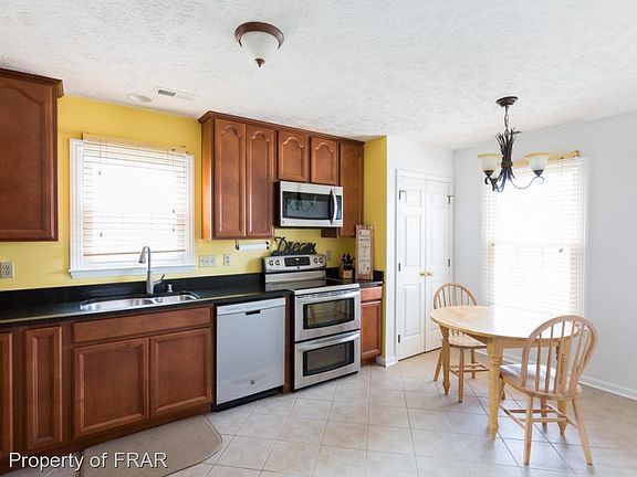 -3BR 2 BA home; beautifully upgraded kitchen w/ stainless steel appliances, granite, and cupboards; upgraded master BR w/ double sinks; spacious great room w/ hardwood floors and recessed lighting. New energy efficient windows, roof, gutters, and water heater installed less than 5 years ago. Perfect location provides access to Fort Bragg and major shopping/dining all within a 2 mile radius.