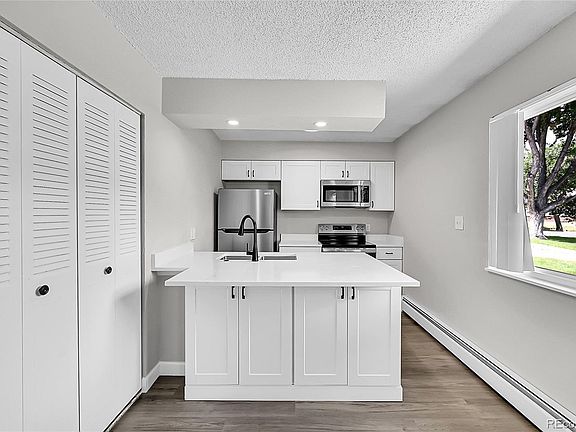 This beautifully remodeled ranch-style 2 bedroom 1 bath townhome offers an impressive blend of modern finishes, comfort, and low-maintenance living in an unbeatable location. Inside, nearly every surface has been tastefully updated, beginning with all-new cabinetry, quartz countertops, and a full suite of stainless steel appliances—including a self-cleaning oven, dishwasher, microwave, disposal, and refrigerator. The transformation continues with new engineered hardwood flooring, recessed lighting, and a fully upgraded electrical panel. A new Mr. Cool split A/C system ensures year-round comfort, while stylish new light and plumbing fixtures add a designer touch throughout. The bathroom has been completely renovated with all-new fixtures, a new vanity and countertop, fresh cabinetry, tub, and toilet. Fresh paint, updated trim, newer windows with new blinds, and a 2022 water heater complete the package. The convenience continues with an included washer and dryer and an attached one-car garage. Set in a well-kept community featuring a pool and playground, this home is perfectly located with quick access to the mountains, downtown, and everything in between.