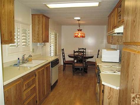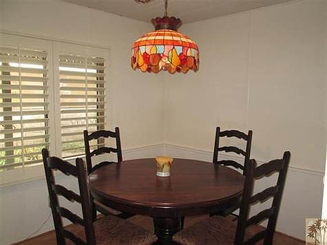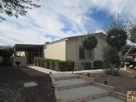 Wonderful Buy for a 1986 home with 3 bedroom PLUS private office/or dining room. Just reduced to $130,000 !!! Office room has nice sliding door to patio. Beautiful white window shutters on windows. Enjoy vaulted ceilings as you enter the front door. Recent ( 2013) exterior & interior paint adds to making this a move in ready home. Walking distance to pool/tennis/Rec center PLUS located on an interior street. Spacious covered patio with Mountain Views. (2) bedrooms at the front of the home with Master at opposite end of home for nice privacy when guest arrive. Open living room with vaulted ceiling & fan. LAMINATE flooring in kitchen/laundry room & guest bath. Kitchen has large eat in area, pantry, nice cabinets & counter space including ceiling solar light. Newer A/C .. Palm Desert Greens is a 55+ community with clubhouse/restaurant/pools/spas/ tennis/ shuffleboard PLUS 18 hole golf course that is included in your HOA's Remember, you own the land