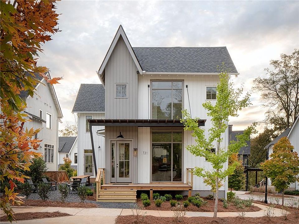 Model Home for Sale ON THE BELTLINE! Light-filled. Modern. Spacious. Functional. Located in the historic Ormewood Park neighborhood and less than 50 yards from a private entrance to the Atlanta Beltline, you will find this stunning, sun-soaked 5BR/4.5BA modern farmhouse, constructed in 2020. The house is situated on a quiet, private loop. As you enter the foyer with built-in bench seating and storage you'll take immediate notice of the gorgeous solid hardwood floors,12-foot ceilings, high-end finishings, open floor plan, and oversized windows that flood the rooms with beautiful natural light. The large gourmet kitchen is the heart of the home and features stainless steel appliances, custom inset cabinetry providing ample storage, and quartz countertops and is adjacent to a beautiful dining room. The kitchen opens up to an oversized living room with accent beams on the ceiling, a bluestone surround fireplace, and double French doors opening up to a private courtyard. On the second level, the primary suite boasts 18-foot cathedral ceilings with accent beams and a walk-in closet. The private suite offers a soaking tub, a large spa-like glass-enclosed tile shower, and a double custom vanity. In addition to the primary suite there are three additional bedrooms on the second level: one with a private suite, cathedral ceilings, and custom lighting; the other two bedrooms share a Jack-and-Jill bathroom. The laundry space is conveniently located on the upper level. In this spacious home, you will also find a finished basement with a full bath and ample storage. This space could be used as a fifth bedroom, office, workout room, or secondary entertainment room. Off the basement, you will find a long two-car garage, a rare feature for homes in this area. The Farmhouses at Ormewood community is conveniently located near Ormewood Park and Grant Park, about a 10-minute drive to downtown Atlanta, and is a short distance on the Beltline from the charming downtown Glenwood Park and Madison Yards areas with restaurants and shopping.