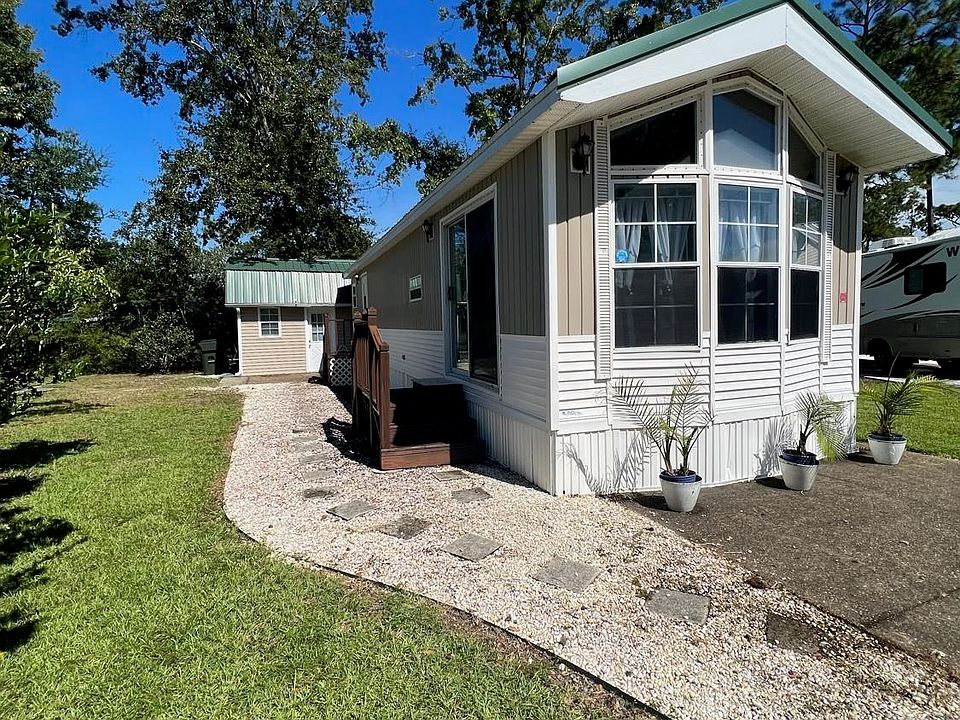 Must see to appreciate this quaint coastal beach house-1 bedroom/1 bath with open floor plan, stainless steel refrigerator, dishwasher, and banquette of storage in kitchen. Nice shed with washer and dryer and an attic that adds plenty of extra storage. This property is in the highly desired, safe, friendly, beach neighborhood of Spanish Cove on the shores of Perdido Bay, just 5 minutes from the Lillian boat launch and only 15 minutes from the sugar white beaches of the Gulf of Mexico. There is something for everyone in this exclusive coastal golf cart community that sits on the Alabama/Florida line. Owners enjoy membership with a lifestyle full of amenities and low POA Dues of only $74/Mo (dues paid quarterly) and includes trash pick-up, 24 hours security and key FOB entry into facilities, two clubhouses, a year-round junior Olympic sized swimming pool that is heated and covered in the winter months. The many offered activities include: aquatic classes, pickleball/tennis courts, basketball court, fitness facility, playground, shuffleboard, and nature hiking trails. You can join the community-organized activities like Bingo, card games, live bands, book clubs, garden club, and group travel opportunities. If you like to relax, you can spend the day at the Spanish Cove beach, fish from the 500-ft pier, or watch the sunset while taking a stroll around this lovely community in your golf cart. Spanish Cove and Lillian are conveniently located near the Pensacola NAS facilities, VA Hospital, Gulf Shores, Orange Beach, and Foley, shopping, restaurants, and the OWA amusement park. Come see your new home or weekend getaway.