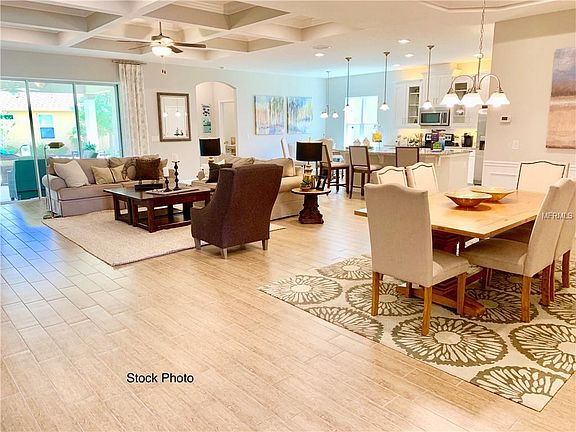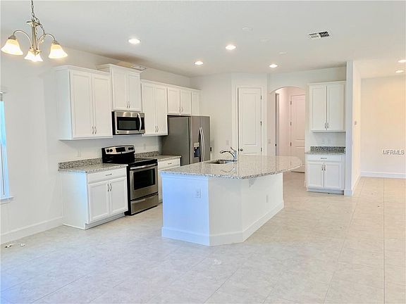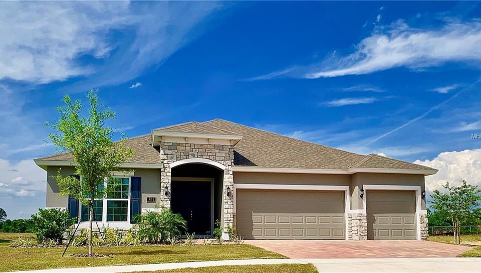 Over Sized Pie Shaped Lot, Ready for a Pool! Open Concept Floorplan, Double Entry Door Foyer, Double Tray Ceiling, Center Island Kitchen, Upgraded Tahoe Linen 42" Cabinets w/Crown Molding, 3cm Granite Counter Tops, Stainless Steel appliances, Walk-in Pantry, Tiled Living & Wet Areas, 8' Interior and Exterior Doors and 51/4" baseboards throughout. Beautiful Fireplace Wall & Triple Slider in Family Room leading to a spacious Lanai. Master Bath with Garden Tub, separate Shower and Double (Quartz) Vanities. 2" Faux Wood Look Blinds included on all Double Pane Windows. 3 Car Garage leaves plenty of room for parking. Home includes Zip System Sheathing for added Weatherization, R-38 Attic Insulation, 16 Seer HVAC & Double-Pane Insulated Windows for added Energy Efficiency. Exterior features include Stone Elevation, Coach Lighting, Paver Driveways & Walkway, Irrigation System and Designer Landscaping. Builder pays all closing costs with preferred lender! Quiet, Bedroom Community, conservation views, close to major lakes & 11 golf courses, close proximity to the Turnpike. In the center of Mt. Dora, Tavares, Clermont and minutes from Orlando.