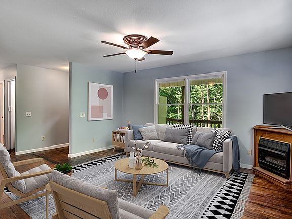 Welcome to the Treehouse! This quaint home in the beautiful Clarks Chapel area evokes the feeling of being in a treehouse, only for grown ups! Featuring 2 BR 2BA, hardwood floors & fresh paint, this charmer is move-in ready! Kitchen is well-equipped w/a ton of storage and a super cool farmhouse sink & new gas range. Living area is open and spacious and features gas logs for additional heat. Head down the hall to the bedrooms and baths. Both bedrooms have new carpet & new baseboard heaters. The primary suite has an updated bath and walk-in closet. Additional features include a new 24,000 BTU mini-split unit, large covered front deck, nice storage shed with power, a small stream running down one side of the property and a winter view. Private and located in an established neighborhood, this home would be ideal for full or part-time living, getaway or investment property. **Photos showing furniture have been virtually staged for reference.**