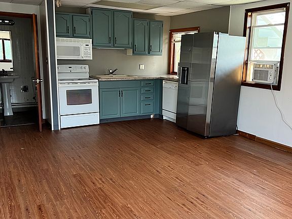 Nice apartment with 2 bedrooms , big kitchen, washer dryer hook ups on bottom floor. On street parking and small back porch. Tenants pay all utilities. Electric baseboard heat. All appliances convey. No showings without Rental application completed from Zillow.