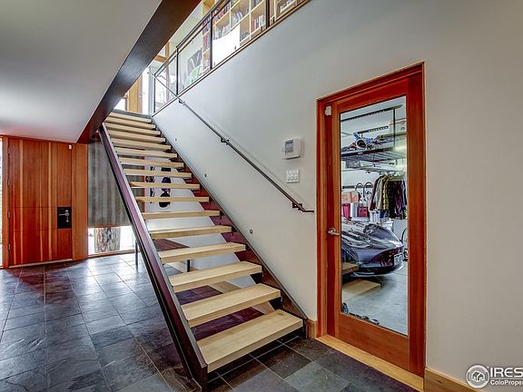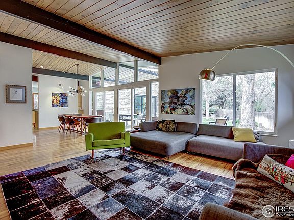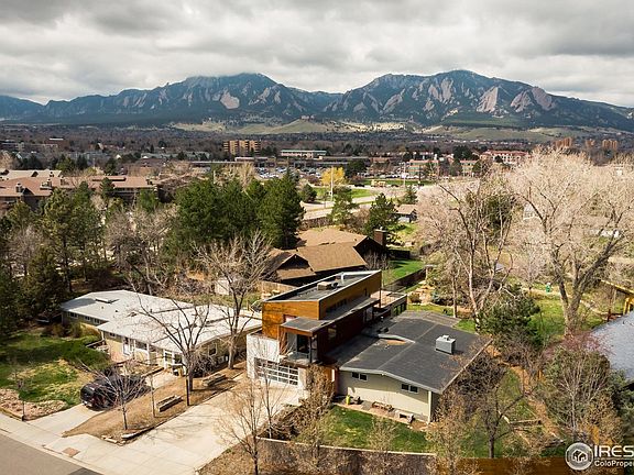 Wonderful mid century modern remodel by renowned architect M. Follwell, 2008. Beautiful private 1/3 acre, landscaped w/large patio, irrig well & raised beds. Comfortable master ste w/huge deck & reflecting pool & magnificent Flatiron views. Upper library w/sitting area. Big windows & natural light for elec usage. Gourmet kitchen w/sandstone counters, SS appl. In floor radiant heated concrete floors in FR & Study. Exterior waterfall from master deck. Wood flooring thruout. Ready for EV.
