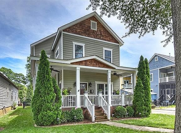 Gorgeous Craftsman Style home that includes an additional 612 SQ FT HEATED GUEST HOUSE with a full bath, living room, kitchenette, and bedroom located right in the heart of NoDa. EARN EXTRA INCOME. Everything at your doorstep for both balance and happiness of city living. Amazingly spacious 2,542 sq ft home with large gated front wrap around porch and screened in back porch. Wonderfully high 10 foot ceilings on both main and second floors, along with vaulted ceilings in the master bedroom. Beautiful hardwood floors on both lower and upper levels. Custom gourmet kitchen w/ stainless steel appliances and 48" Viking gas range. Granite counter tops along w/ bar stool seating and spacious dining area. Master bedroom with en suite, over-sized frameless glass shower, endless hot water from tankless water heater. Brand New HVAC system and Duct system. Perfectly maintained and serene fenced in backyard with a custom fire pit and cover. Large two car garage with plenty of holiday storage space.