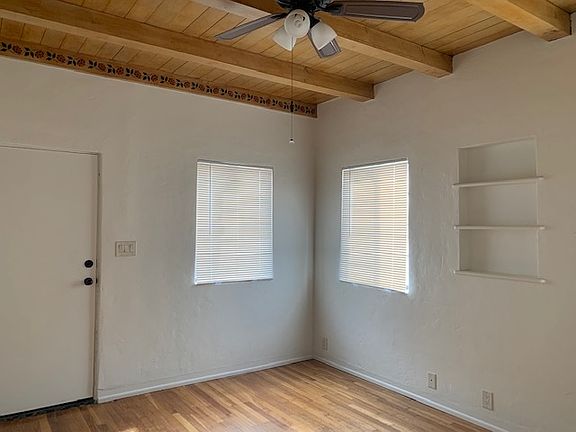 PRE-LEASING for AUGUST 2025!! ACROSS FROM U OF A Come home to this Quaint, adobe-style 1940's vintage studio is well maintained and features original wood flooring, wood beamed ceilings throughout, ceiling fan with a bright open kitchen and newer appliances. Only minutes walk to the University of Arizona and short distance to Historic Fourth Avenue, Main Gate Square and Downtown Tucson. Private rear parking available for tenants. Tenant only pays electric! Water and trash included!! Evaporative cooling! Security deposit is equal to one month's rent. Pets upon Owner's approval with a $200 non-refundable pet fee. Contact us to schedule a showing.
