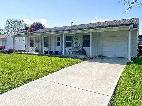 CUTE three-bedroom ranch in Rantoul with new furnace and A/C in 2020! Ample eat-in kitchen with Oak cabinets and sliding glass door leading to patio overlooking fully fenced back lawn. Hardwood flooring under the carpet throughout. Full bath boasts a linen closet, shower tile to the ceiling, and soaker tub. Updates include new windows and soffit in 2016 and new roof in 2006. All appliances, including washer and dryer, are included.