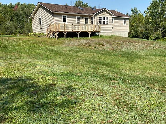 This private and affordable ranch is set back from the road on a beautiful 3.3 acre lot. This home has been well maintained both inside and out. Inside you will find a nice open concept kitchen, dining area and living room with vaulted ceilings along with large windows and skylights that allow for loads of natural light. Nice sized bedrooms with ample closet space and 2 full baths. Enjoy the front covered porch and the large back deck overlooking your private yard. The full basement offers lots of storage space or finish it off for additional living space. Come see if this is the one for you before it's gone!