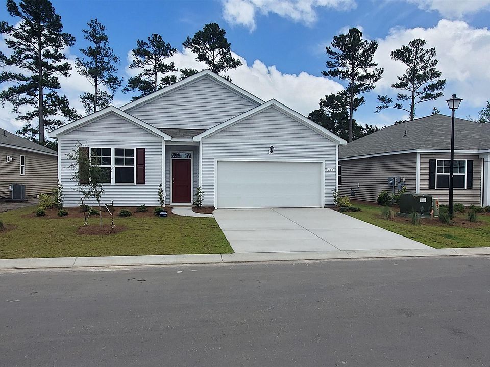 The Vistas at Sun Colony is a brand new community in Sun Colony. Convenient location near the new Highway 31 connector with easy access to all of the Grand Strand. This new community offers open concept single story and 2-story homes. Our Cali plan is a thoughtfully designed one level home with a beautiful, open concept living area that is perfect for entertaining. The kitchen features granite countertops, an oversized island, a walk-in pantry, and stainless Whirlpool appliances. The large owner's suite is tucked away at the back of the home, separated from the other bedrooms, with a walk-in closet and spacious en suite bath with a double vanity, 5' shower, and separate linen closet. Spacious covered rear porch adds additional outdoor living space. This is America's Smart Home! Each of our homes comes with an industry leading smart home package that will allow you to control the thermostat, front door light and lock, and video doorbell from your smartphone or with voice commands to Alexa. QuickTie framing system also included. *Photos are of a similar Cali home. (Home and community information, including pricing, included features, terms, availability and amenities, are subject to change prior to sale at any time without notice or obligation. Square footages are approximate. Pictures, photographs, colors, features, and sizes are for illustration purposes only and will vary from the homes as built. Equal housing opportunity builder.)