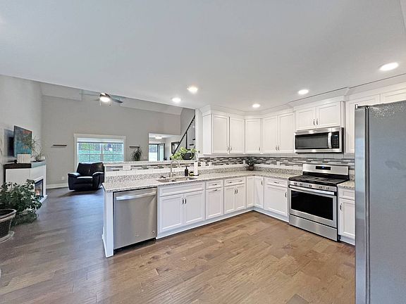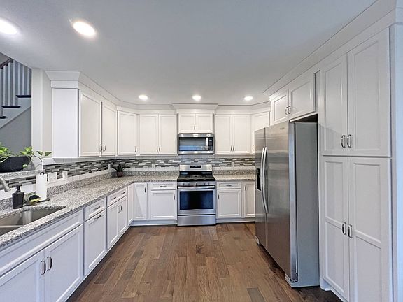 Gas stoveLush backyardElegant tilePlush carpetSleek granite countertopsRich hardwoodsOpen airy layout