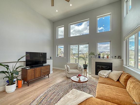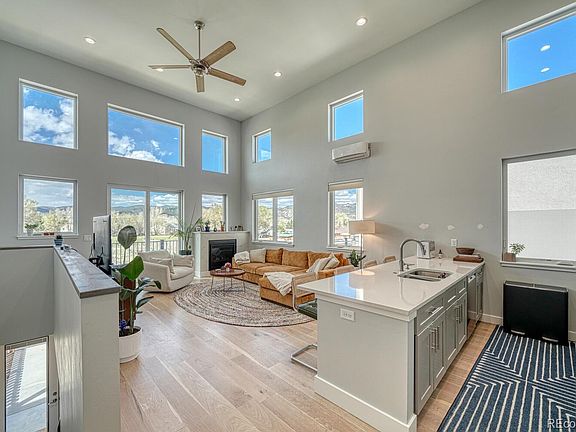 The stylish kitchen is equipped with high-end Bosch appliances, including a gas range, perfect for culinary enthusiasts. High ceilings enhance the open and airy feel, while large windows frame the beautiful mountain views. Enjoy outdoor living on the upper deck, covered front porch, or in the fenced yard.