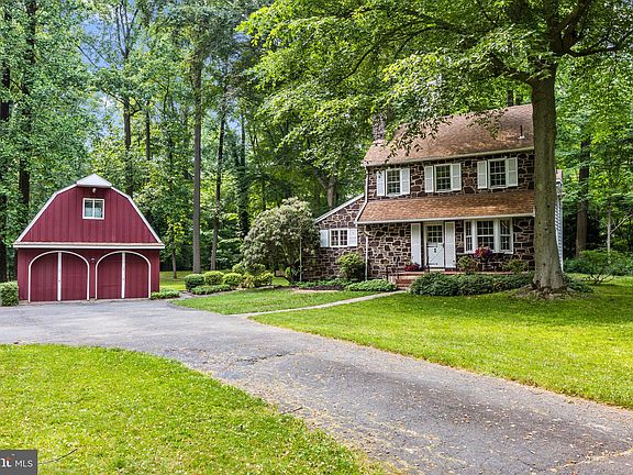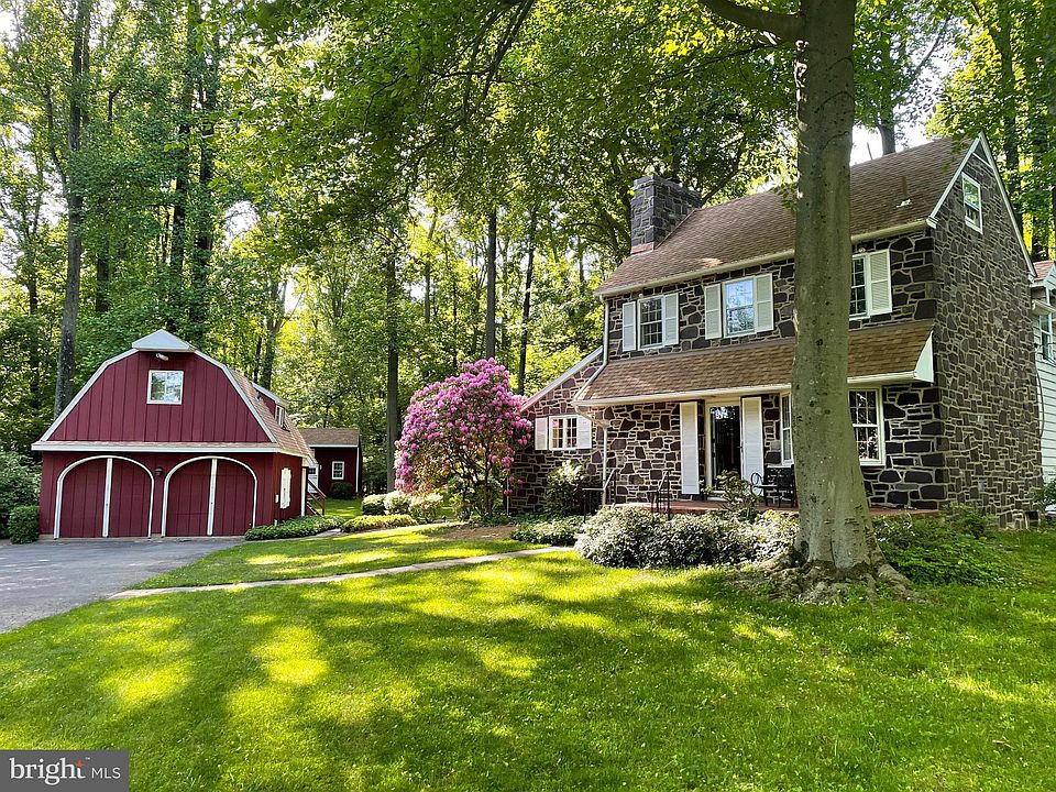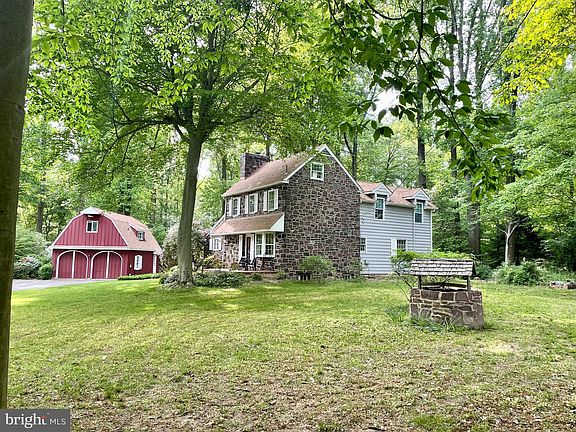 This incredible property is available for sale for the first time in 40 years! Built in 1959 as a replica of a 1790 Bucks County Stone Farmhouse, this one-of-a-kind home, is beautifully situated amid many mature trees on almost 3 acres of natural privacy! This sprawling property has three structures; the main home, a detached garage with guest suite/ home office, and an oversized workshop - while being just minutes away from the center of Newtown. Enter the home and step back in time. The front living/dining area features walnut pegged random width oak floors, a fireplace with wood burning stove and a rustic wood mantle. The kitchen boasts a brick floor, vaulted ceiling with exposed beams and skylights, brick framed gas stove with a decorative stainless-steel hood, and poplar cabinets with period hardware. For additional living space, there is a family room also with walnut pegged oak hardwood floors, exposed beams, built in bookcases, and bow window providing gorgeous views of nature. The sun room, with bluestone slate flooring, vaulted ceiling with wood beams, skylights, and floor to ceiling windows, can be accessed from both the kitchen and the family room and provides spectacular views of the natural landscape. A powder room and coat closet complete this level. A classic farmhouse stairway leads to the second level which includes a master suite addition with newly remodeled bath. The second bedroom with oak pegged hardwood floors is highlighted by a gas fireplace with brick surround and wood mantle. Adjacent to bedroom 2 is the remodeled hall bathroom and a door to the third floor bedroom with hardwood floors. Included on the property is the two-car detached garage. There is a separate entrance to the second floor, accessed by an outside staircase. The second floor living space has endless possibilities as a guest suite, in law- suite, art studio or home office. Included in this space is a kitchenette, a full-size refrigerator, full bathroom and walk-in closet. A row of windows and three skylights allows for an abundance of natural light. For the craftsman or the hobbyist there is yet another additional building with a large workshop to transform into any type of workspace you desire. Enjoy the beautiful natural setting surrounding your property by relaxing on the spacious wood deck or stepping out to the fire pit. This home allows you to escape from the bustle of Newtown and re-kindles your love of the outdoors, all without leaving your home.