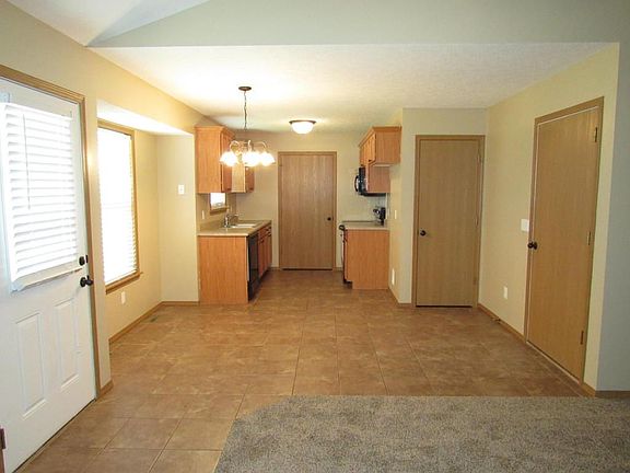 New carpet, paint, range and microwave. Brick front, vinyl sides, tile floors in the kitchen, baths, laundry and entry, raised ceilings, ceiling fans, insulated walls for sound, huge walk-in pantry in the kitchen, deck, storm doors, extra landscaping and 2 car garage. 100% USDA financing available.