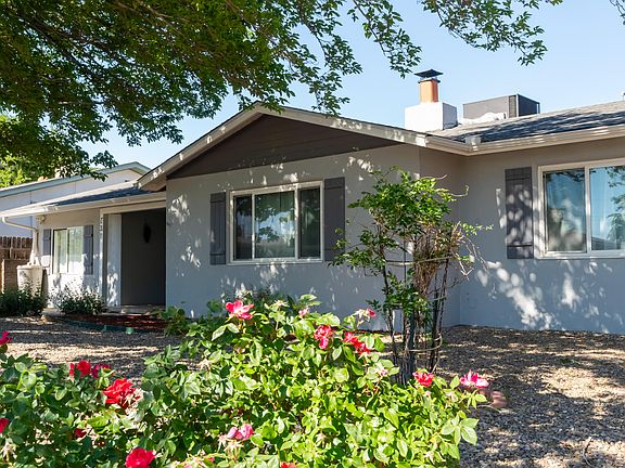 Vintage charm meets modern functionality in this well-appointed home! Hardwood floors welcome you into the light-filled living room. Updated kitchen includes newer stainless steel appliances and granite counters. Luxuriate in your beautifully designed hall bath with separate soaking tub. Or retreat to the primary suite on the other side of the home with walk-in closet and private bath. Two living areas and a formal dining provide room for everyone. Outside you'll be excited for the backyard access (from the alley), large garden areas and beautiful covered patio. Two large sheds give you great storage or room for your hobbies/workshop. Enjoy ref air and vinyl/thermal windows to better appreciate the Albuquerque summers! Other upgrades include 200 amp service and sewer line replacement.